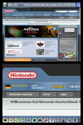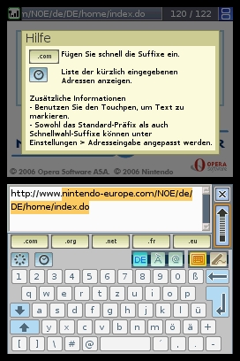 In den weiteren Funktionen unterscheiden sich die Modi nicht. Wie von jedem Browser gewohnt, wird auch auf dem DS stets eine Taskleiste angezeigt, die die wichtigsten Funktionen bereit hält: zurück, vor, Stopp, Neu laden und Internetadresse eingeben. Des Weiteren kann man sich seinen Verlauf anzeigen lassen, Lesezeichen für oft besuchte Seiten speichern oder das Internet bzw. die gerade angezeigte Seite nach einem Begriff durchsuchen lassen. Die übrigen Funktionen sollen das Surfen speziell mit dem NintendoDS erleichtern. So kann man zu jedem Zeitpunkt zwischen den beiden Darstellungsformen wählen, die Anzeige zwischen 50 und 150% zoomen und das Laden von Bildern an und abschalten.