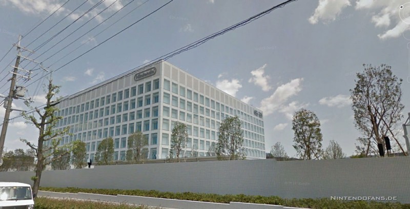 Aushängeschild: Jetzt weiß man auch von weitem, wer hier eingezogen ist. Auf jeder Seite des Neubaus wurde der Nintendo-Schriftzug (in unseren lateinischen Schriftzeichen!) in zurückhaltendem Grau angebracht. Die Bauzäune sind einer fein gefliesten, weißen Wand gewichen.