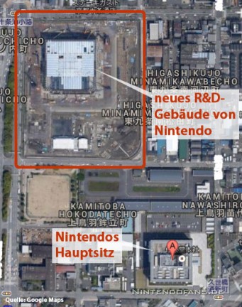 Großer Bruder: Flächenmäßig ist der Neubau dem Hauptgebäude überlegen - schließlich sollen in naher Zukunft über 1.500 kreative Mitarbeiter an den Marios und Yoshis der Zukunft werkeln.