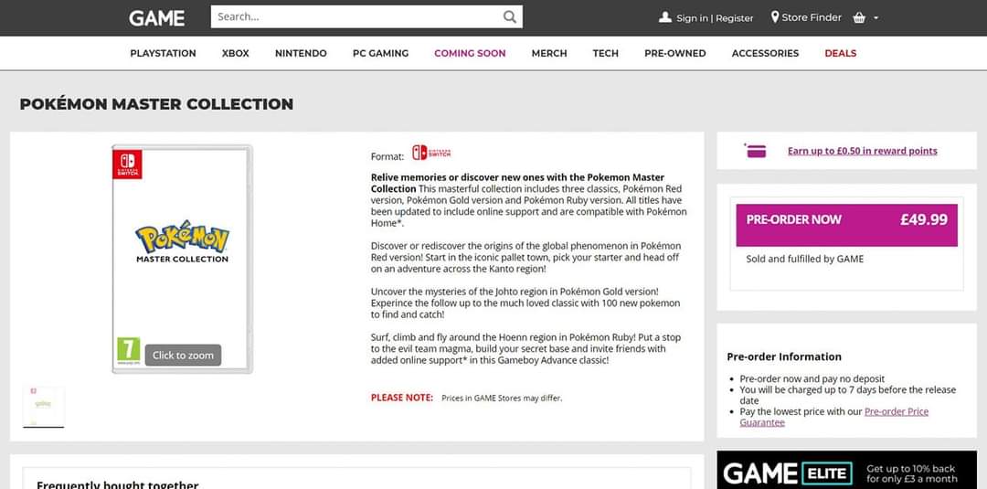 Via dem Onlineshop GAME wurde wohl eine neue Pokémon Collection für die Nintendo Switch geleaked.