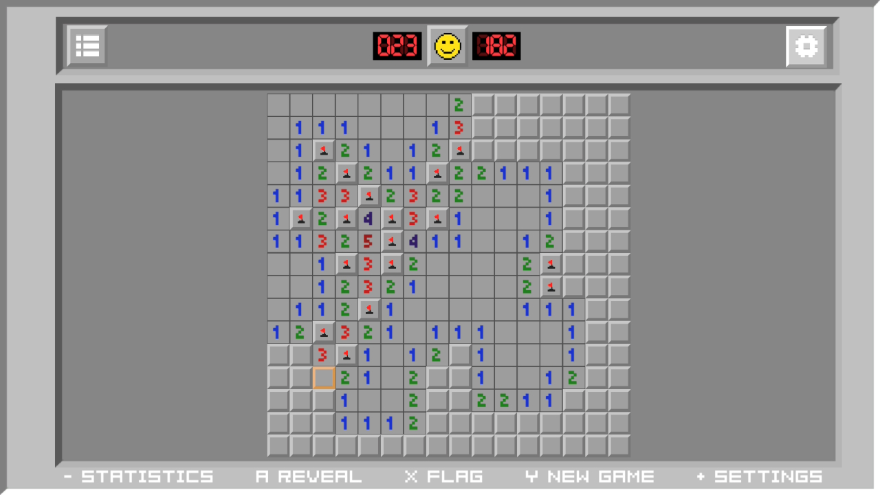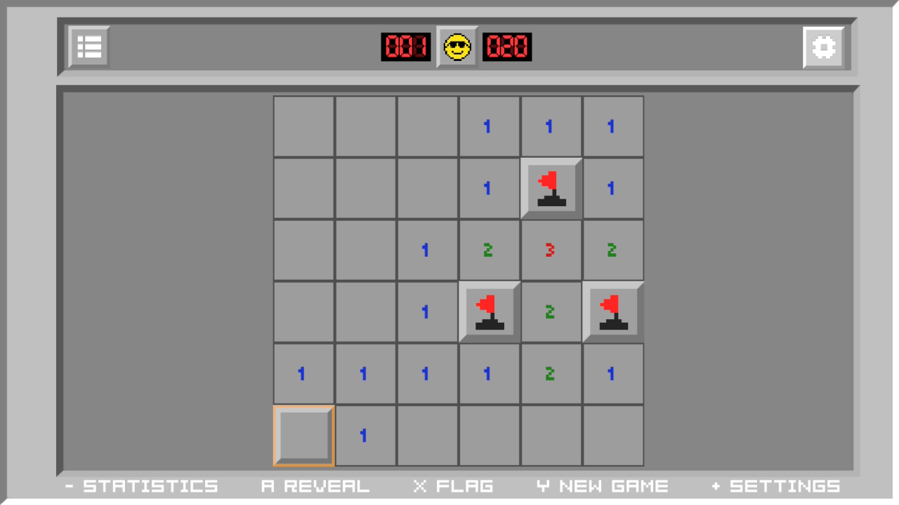 Dank Soroka Games ist Minesweeper nun auch für die Nintendo Switch erhältlich. Und das praktisch in Form des Originals. Das unverwüstliche Spielprinzip wurde auch hier unverändert übernommen. In einem Raster, dessen Größe je nach Schwierigkeitsstufe von 6x6 bis 40x20 reicht, muss eine bestimmte Anzahl an Minen ausfindig gemacht werden. Klickt ihr auf ein Feld, verrät euch die erscheinende Zahl, wie viele Minen in den 8 Feldern um sie herum schlummern. Durch das Aufdecken weiterer Felder und Zahlen gilt es nun, geschickt zu kombinieren, hinter welchen Kacheln die Sprengkörper verborgen sind und diese mit einer Flagge zu markieren.