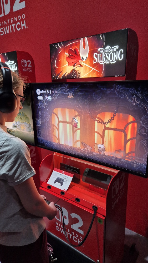 Zum einen gab es diverse Titel anzuspielen, die wenige bereits zur Nintendo Switch 2 Experience in Berlin im April anspielen durften, wie z.B. Metroid Prime 4: Beyond oder Cyberpunk 2077: Ultimate Edition, Mario Kart World oder Hades II. Aber auch erstmals anspielbare Hits wie Pokémon-Legenden: Z-A, Kirby AirRiders, Hollow Knight: Silksong, Borderlands 4 oder Elden Ring: Tarnished Edition waren dabei.