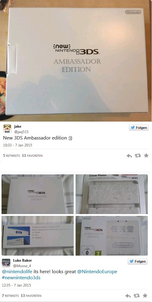 Das ging ja schnell - erst gestern hat Nintendo an ausgewählte Mitglieder Mails versendet mit der Möglichkeit ein New 3DS vor allen anderen zu erwerben. Und das in einer exklusiven Ambassador Edition.